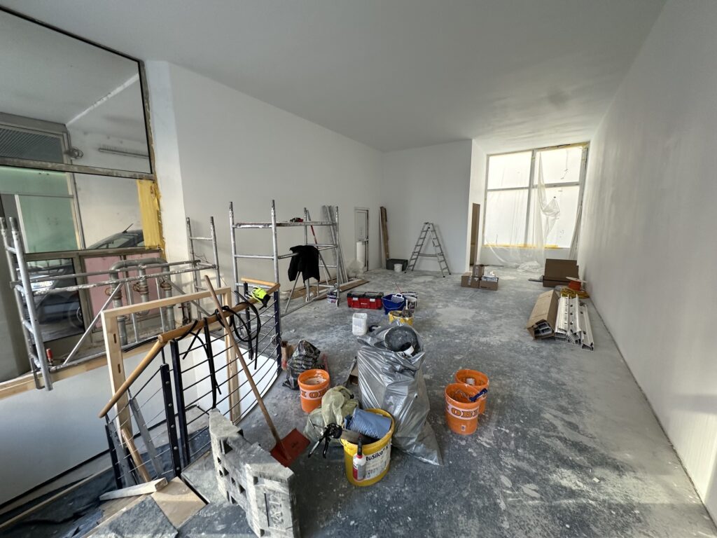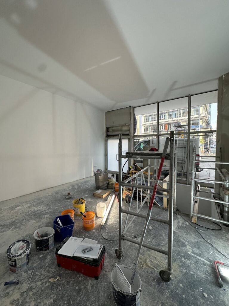 Auch die Wasser- und Versorgungsleitungen wurden entsprechend angepasst, um die Räumlichkeiten technisch auf die neue Nutzung vorzubereiten. Durch eine durchdachte Planung entstand eine effiziente und übersichtliche Verkaufsfläche.